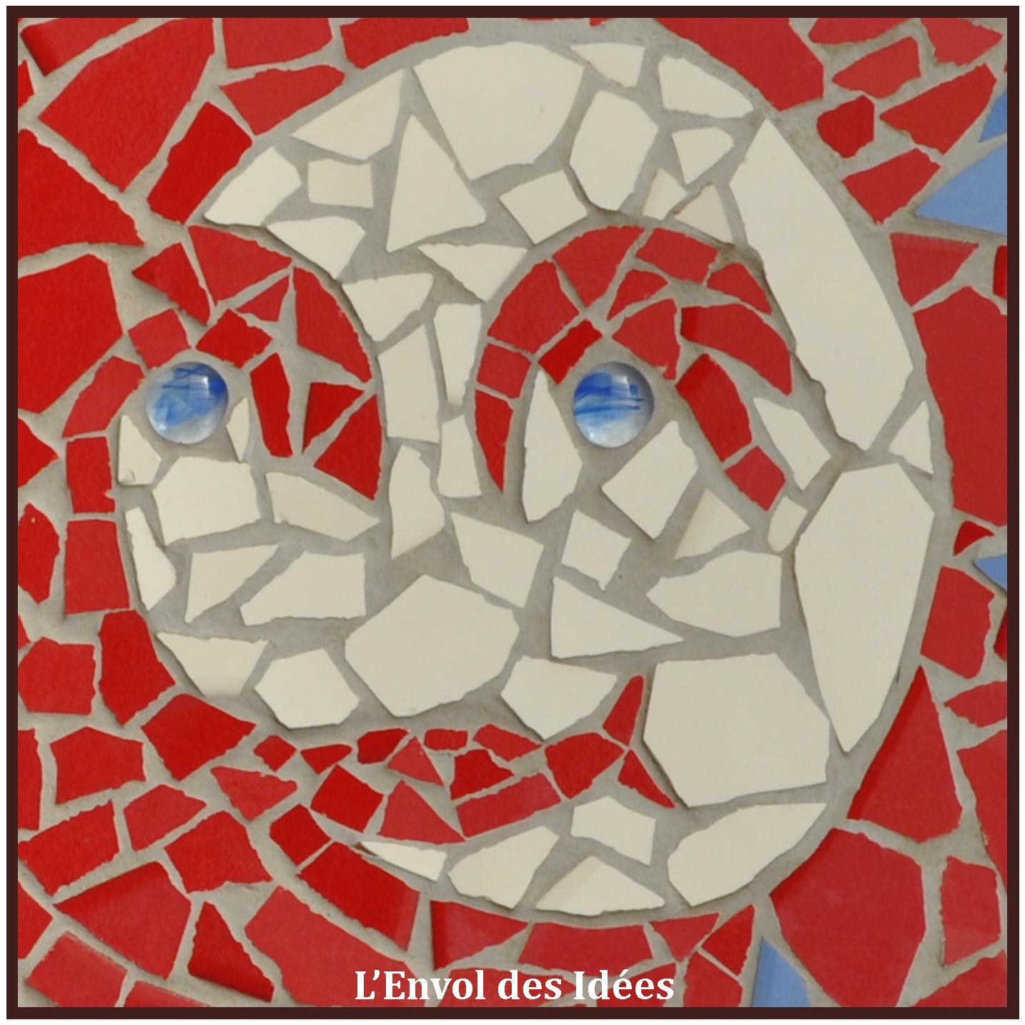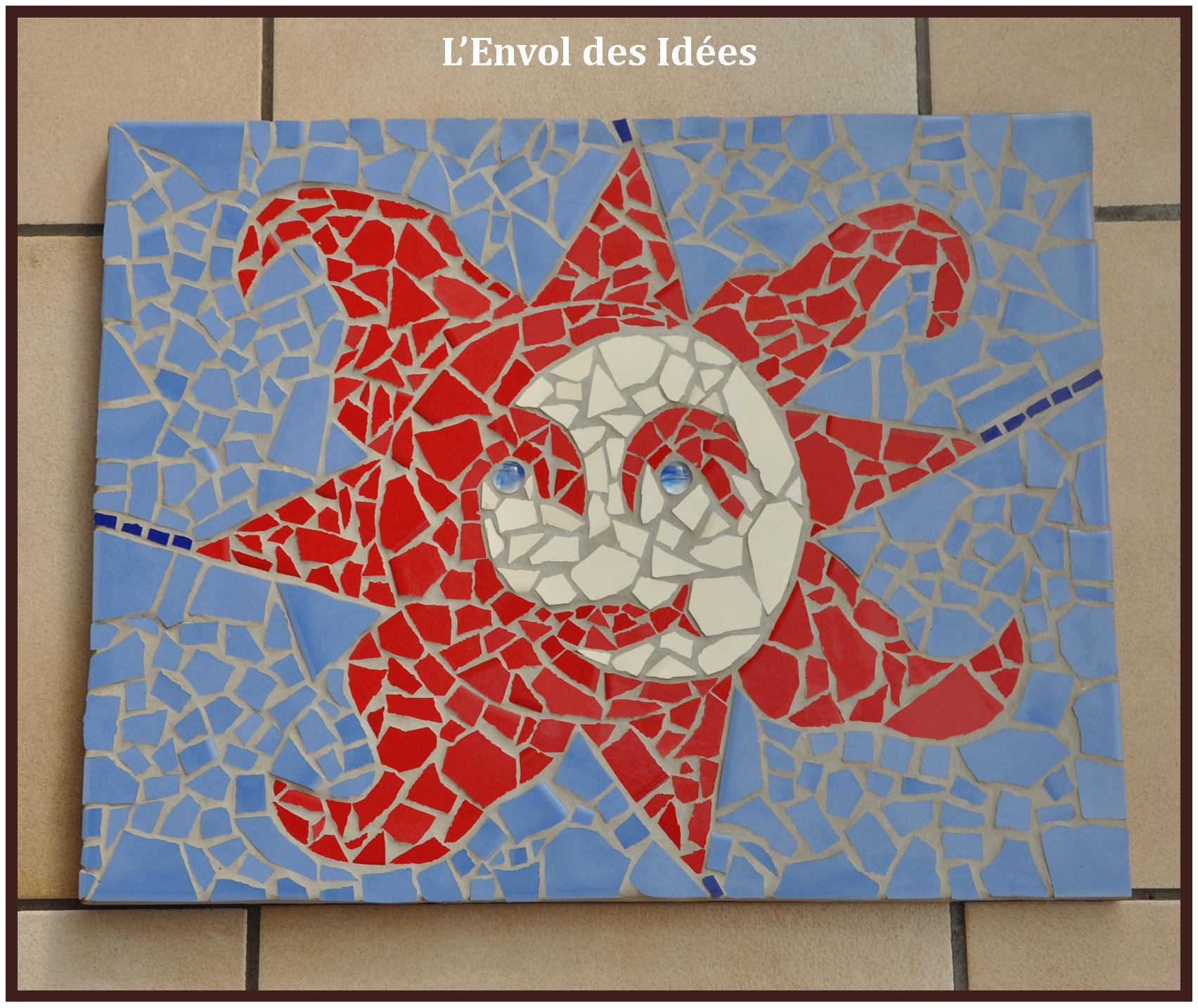 Ce soleil est ma première réalisation en mosaïque avec, plus précisément, du bête carrelage. J'ai appris la technique à l'atelier isara avec Tuwizane Yengo dit Twix. C'est un excellent prof, très à l'écoute.