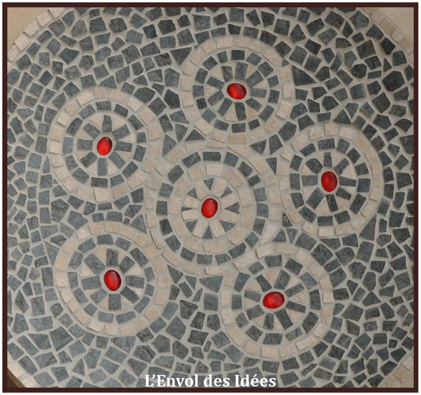 Pour la première, d'un diamètre de 60 cm, j'ai ajouté des billes de verre que l'on trouve un peu partout.
