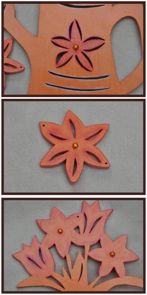 Le fond est en Canyon Orange DA238. J'ai, ensuite, appliqué des touches de couleur en brossant à sec (drybrush) sur les fleurs et à l'intérieur de l'arrosoir respectivement avec du Razzle Berry DA276 et du Snow Titanium White DA01.
