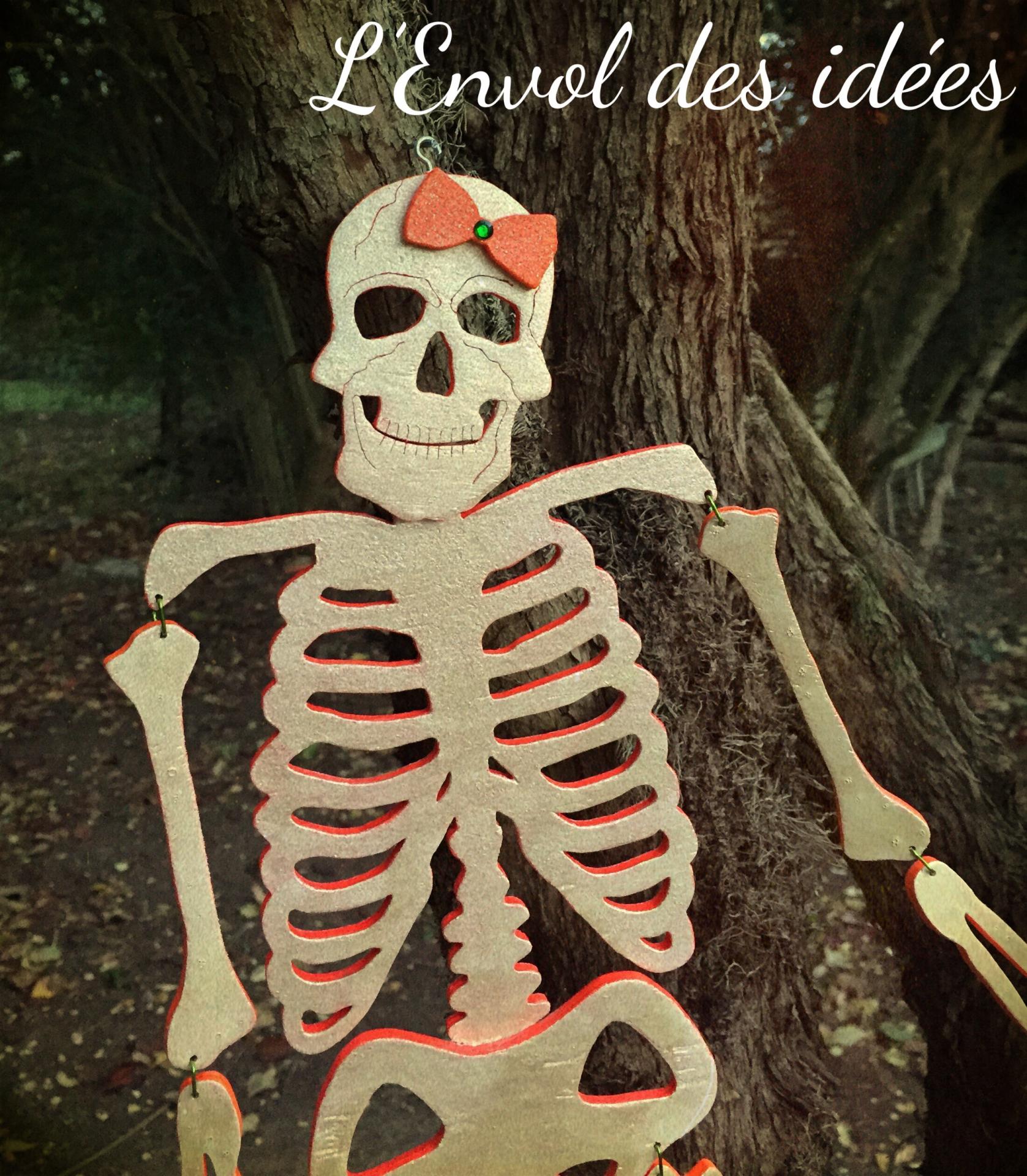 A cette occasion, j'ai réalisé ce couple de squelettes, Os-car et Os-waldine, selon le modèle créé par Sheila Landry dans le magazine Creative Woodworks & Crafts de novembre 2013. Je suis un vraie fan de Sheila Landry car elle crée non seulement des designs à chantourner mais également des designs à peindre car elle excelle aussi en peinture décorative. Voici le lien pour commander le patron des squelettes.