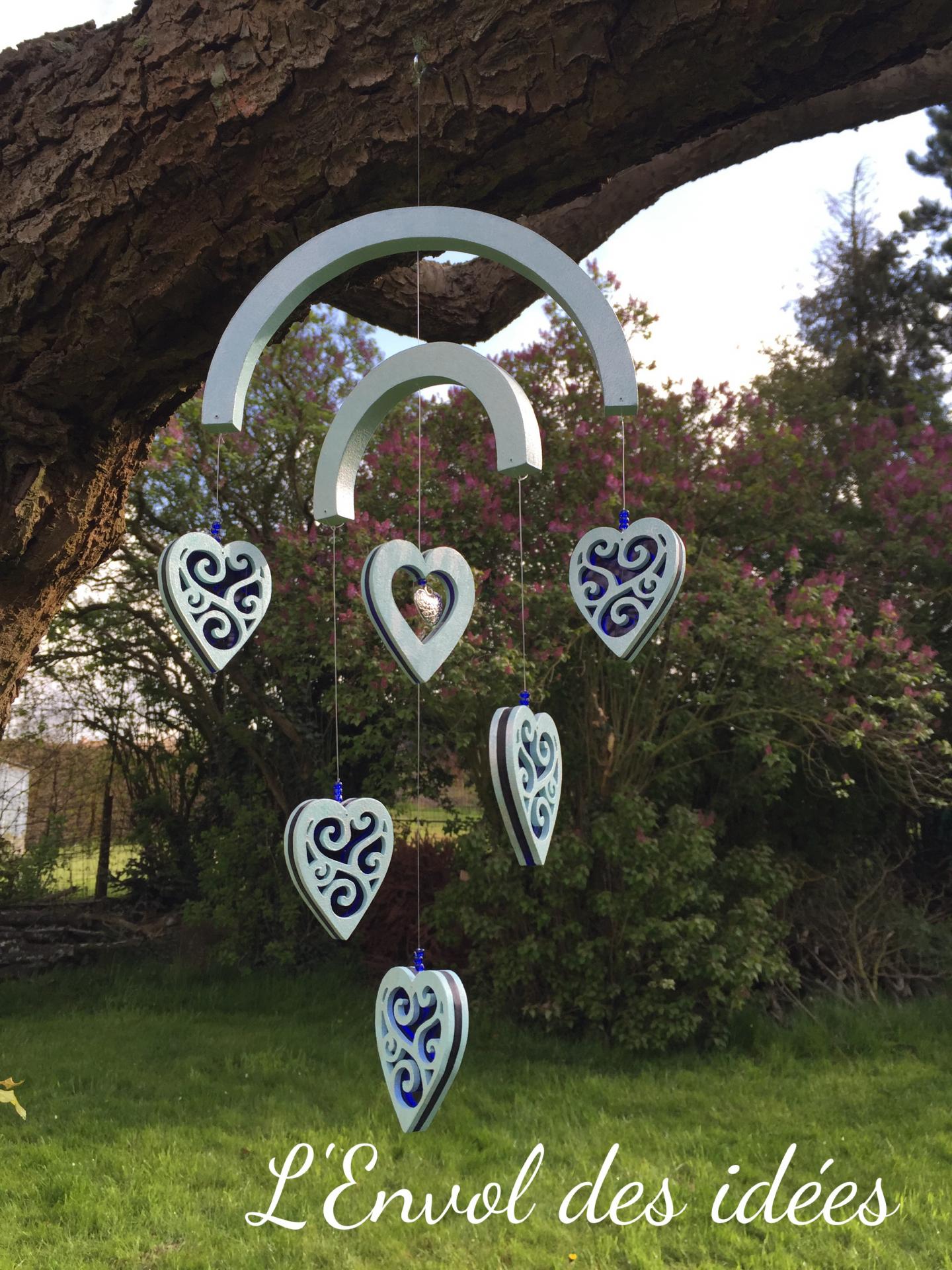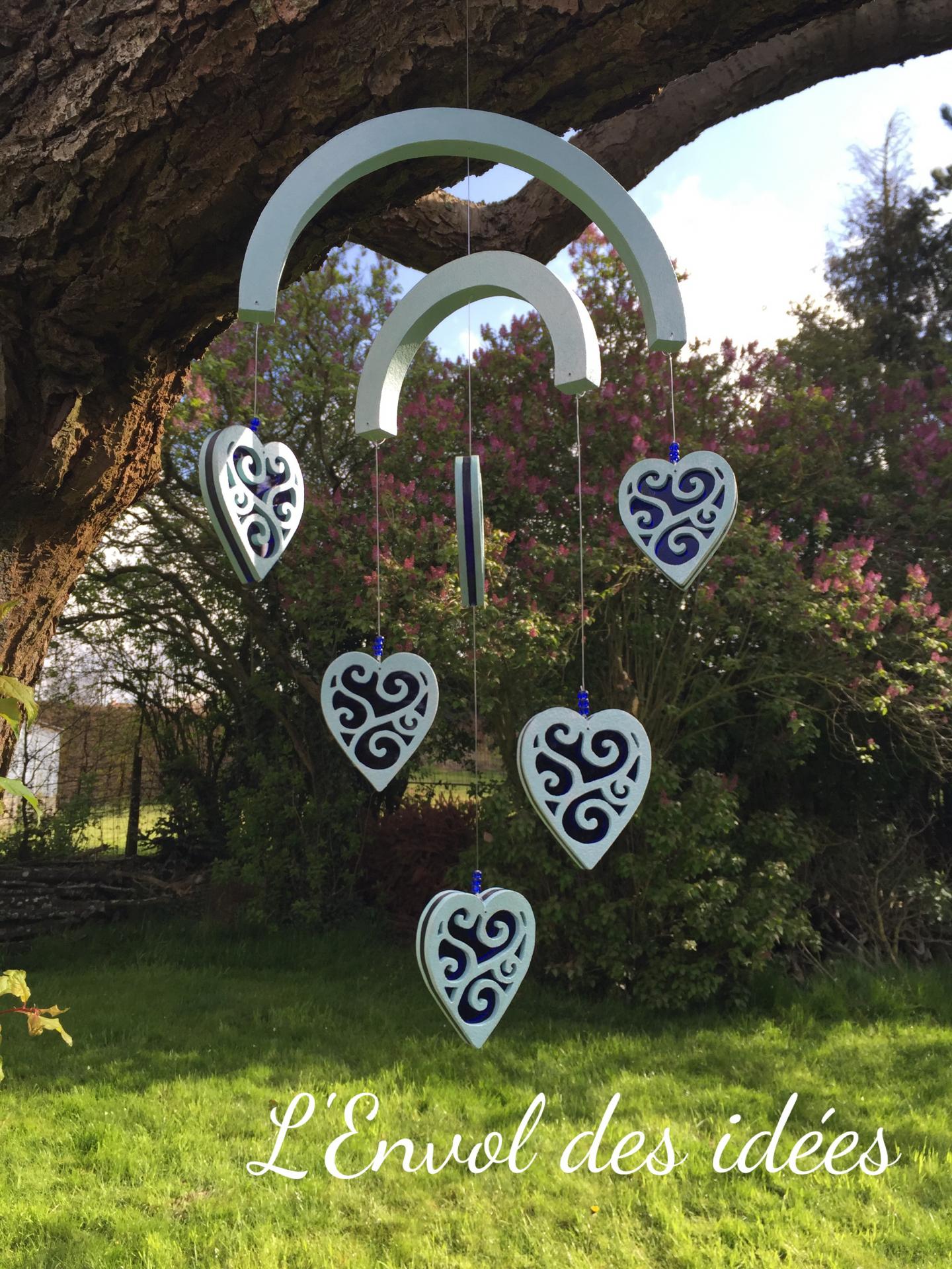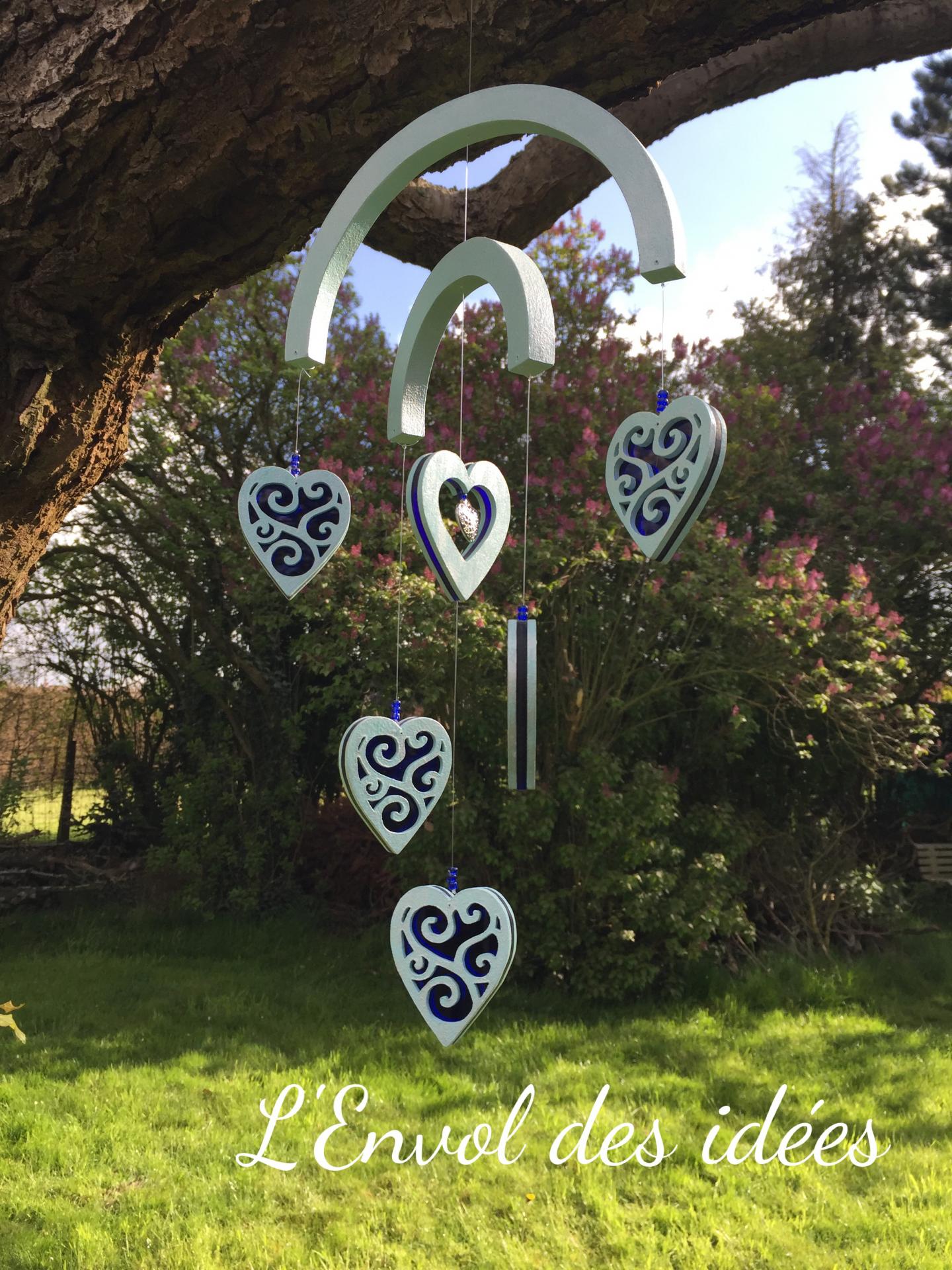 En tant que vraie fan de mobile, j'ai craqué pour le modèle de Sue Mey. Mais, comme d'habitude, je ne me suis pas contentée du modèle ... il fallait que ce mobile capte la lumière ;-)Dans ce cadre, l'association mdf / plexi se fait parfaitement et donne un très chouette résultat. De plus, la finition peinture en "bleu d'eau" avec un lustre métallique donne encore plus de brillance à l'ensemble.