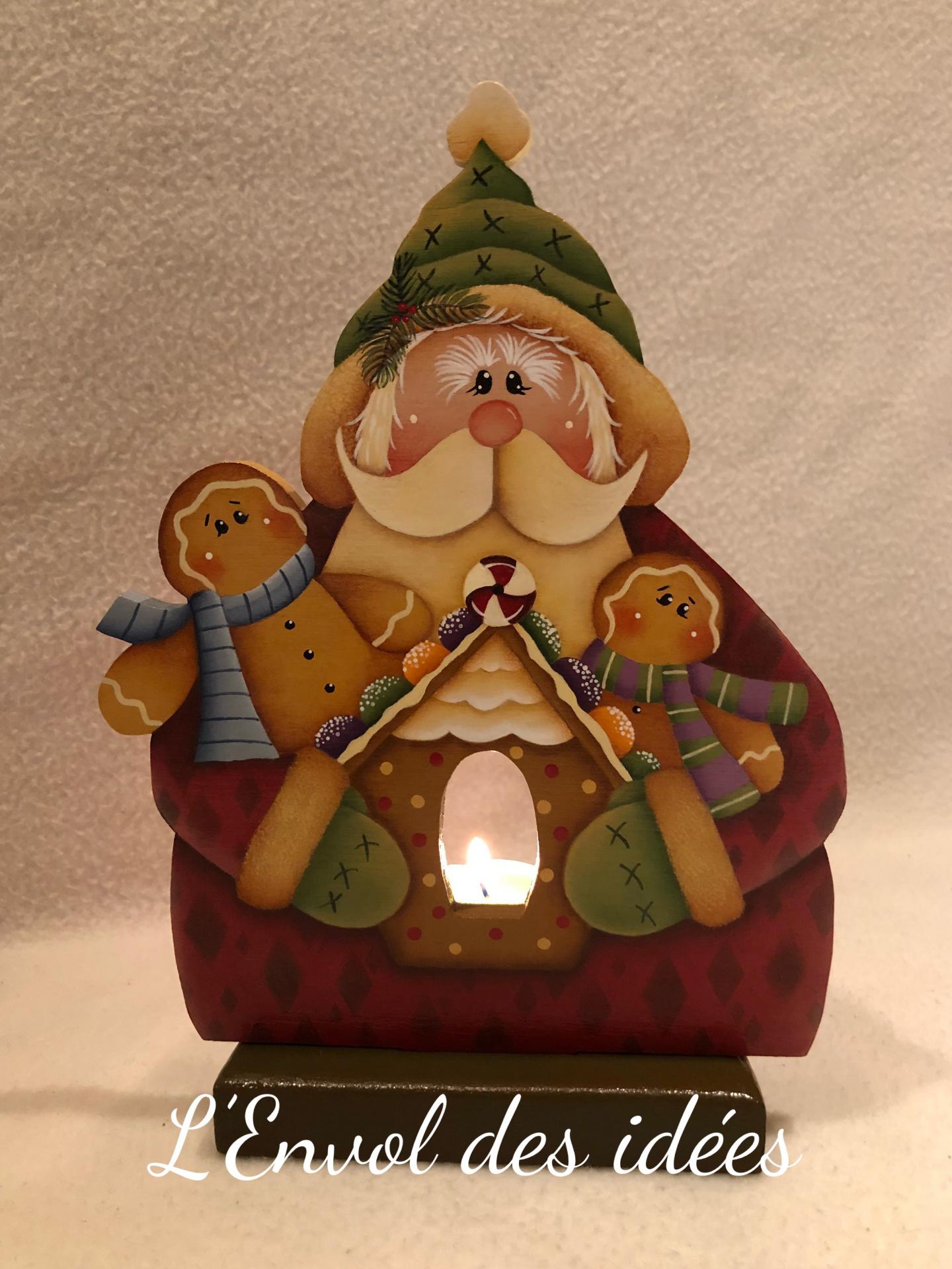 Il s'agit donc d'un Père-Noël tout en rondeurs tenant dans ses bras des bonhommes en pain d'épices créé par Renée Mullins alias Plum Purdy (voir explications dans mon billet Porte-bougie saisonnal - Partie 1).