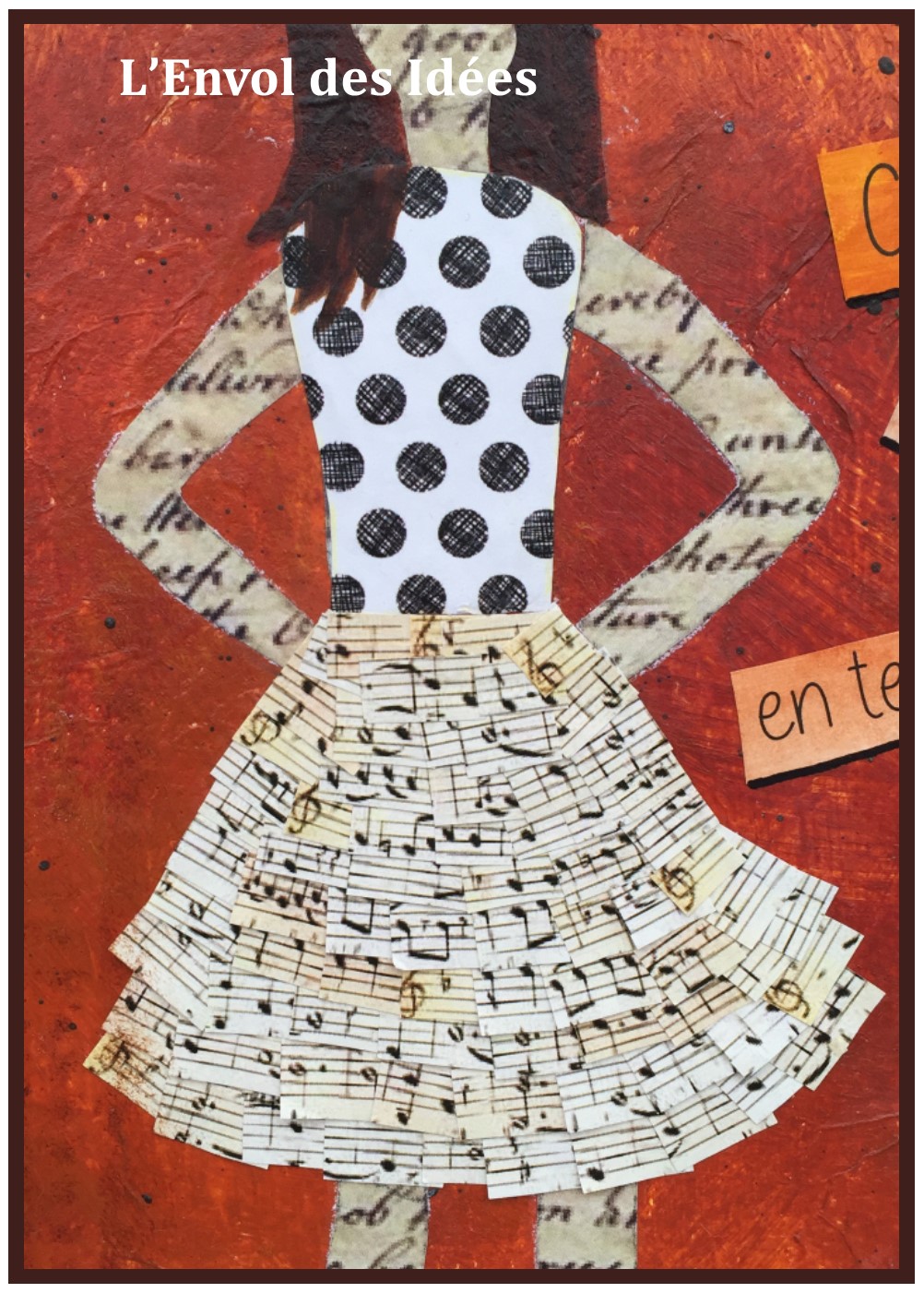 J’ai flashé sur un projet mixed medias de BaxtersMom, posté sur Pinterest, avec une jeune fille portant une jupe en notes de musique.